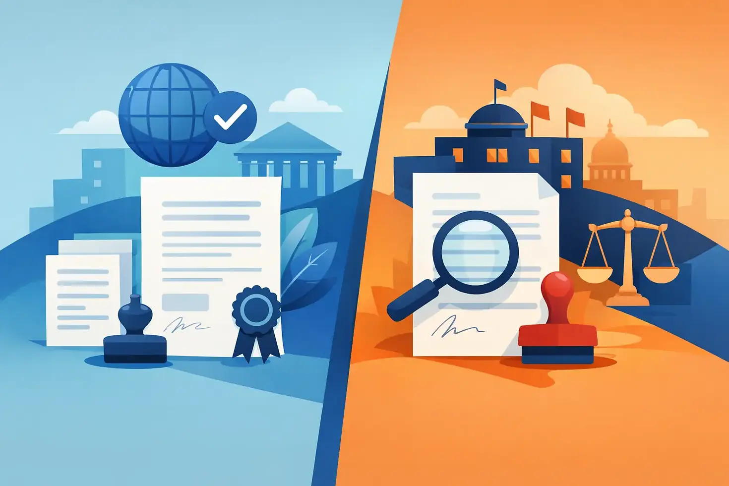 The simplest way to understand the apostille vs legalization process is this: an apostille is a single form of authentication used between countries that are part of the Hague Apostille Convention. Legalization is a multi-step chain used when either the issuing country or the receiving country is not operating under that convention for the document in question.